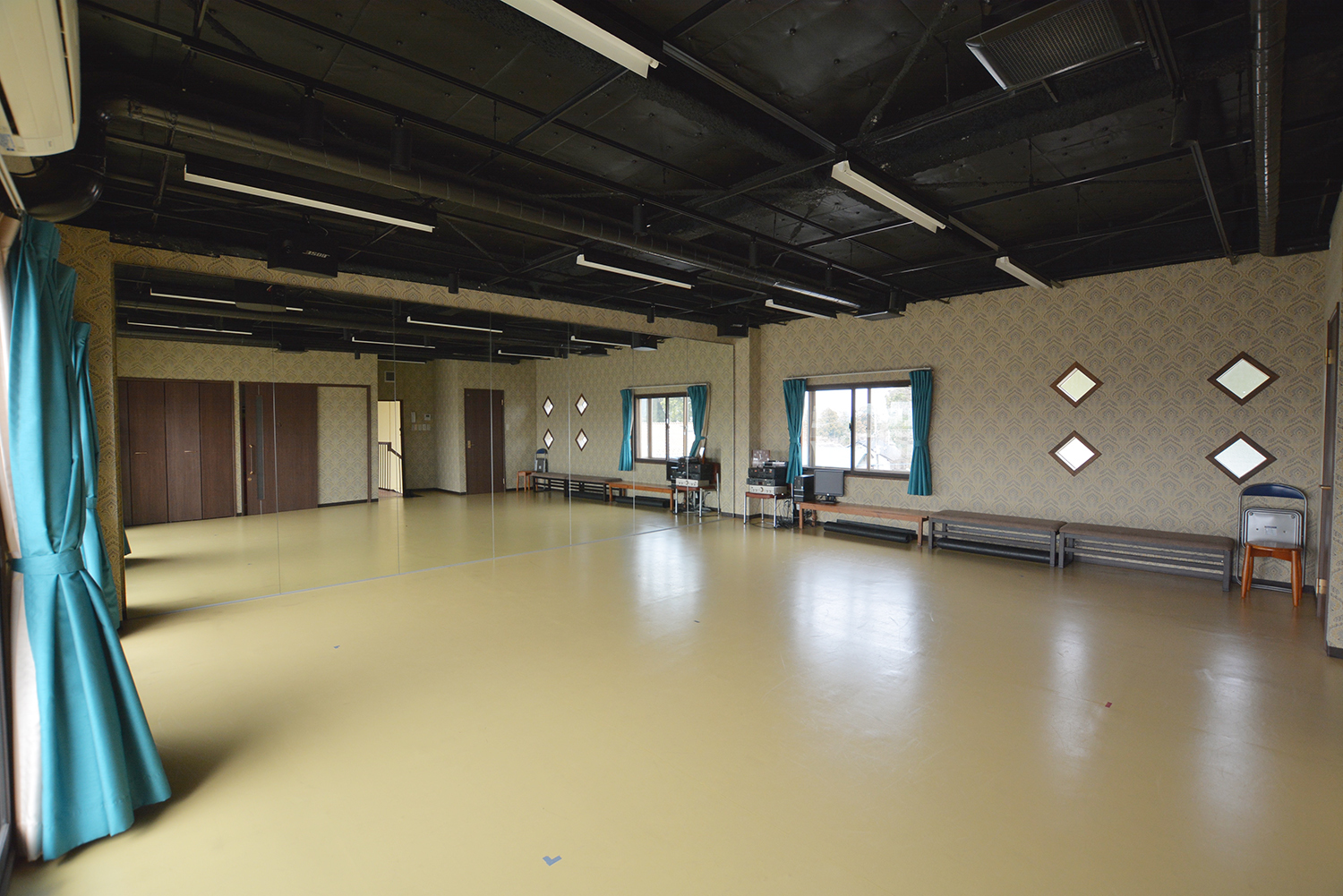 広さ:25帖 一面鏡張り 冷暖房完備 2F東側